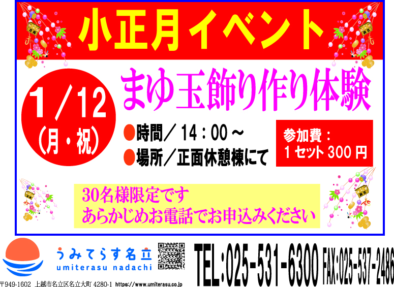 平素よりうみてらす名立をご利用いただきまして誠にありがとうございます。