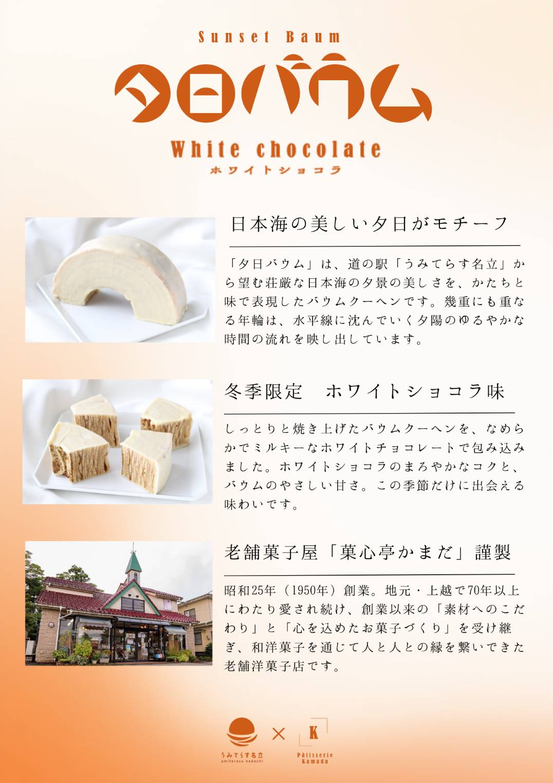 道の駅うみてらす名立オリジナル商品 「夕日バウム」の新商品 冬季限定「ホワイトショコラ」発売のお知らせ