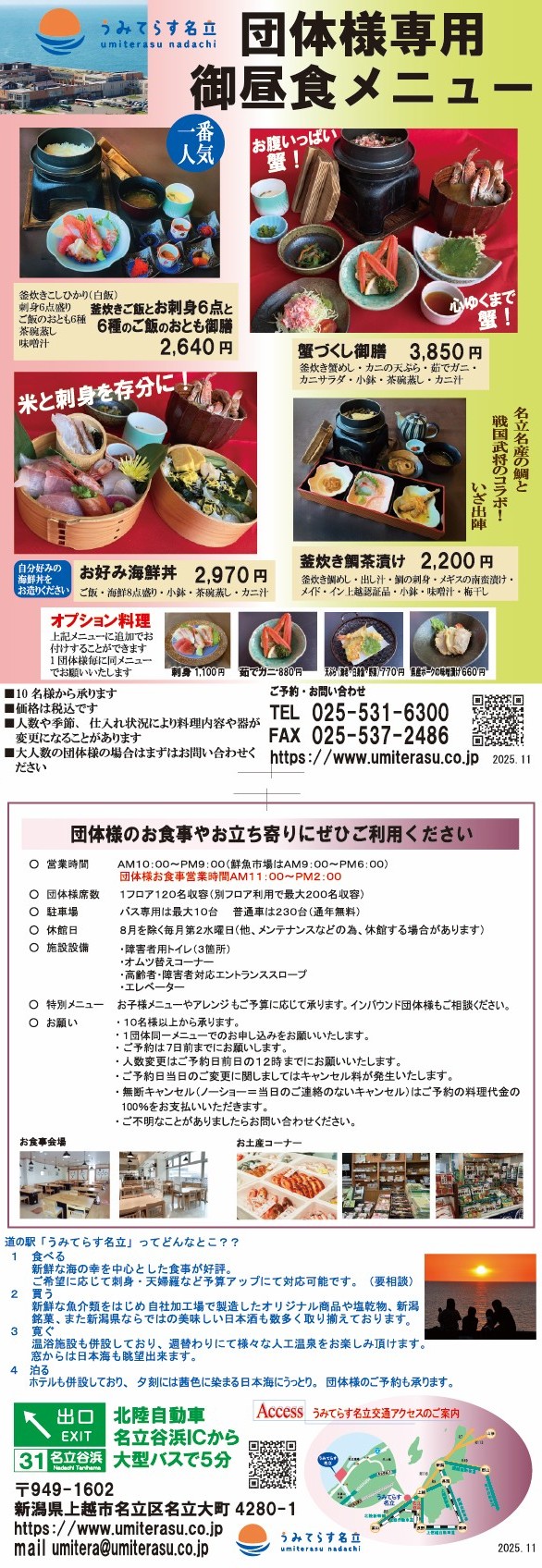 平素よりうみてらす名立をご利用いただきまして誠にありがとうございます。